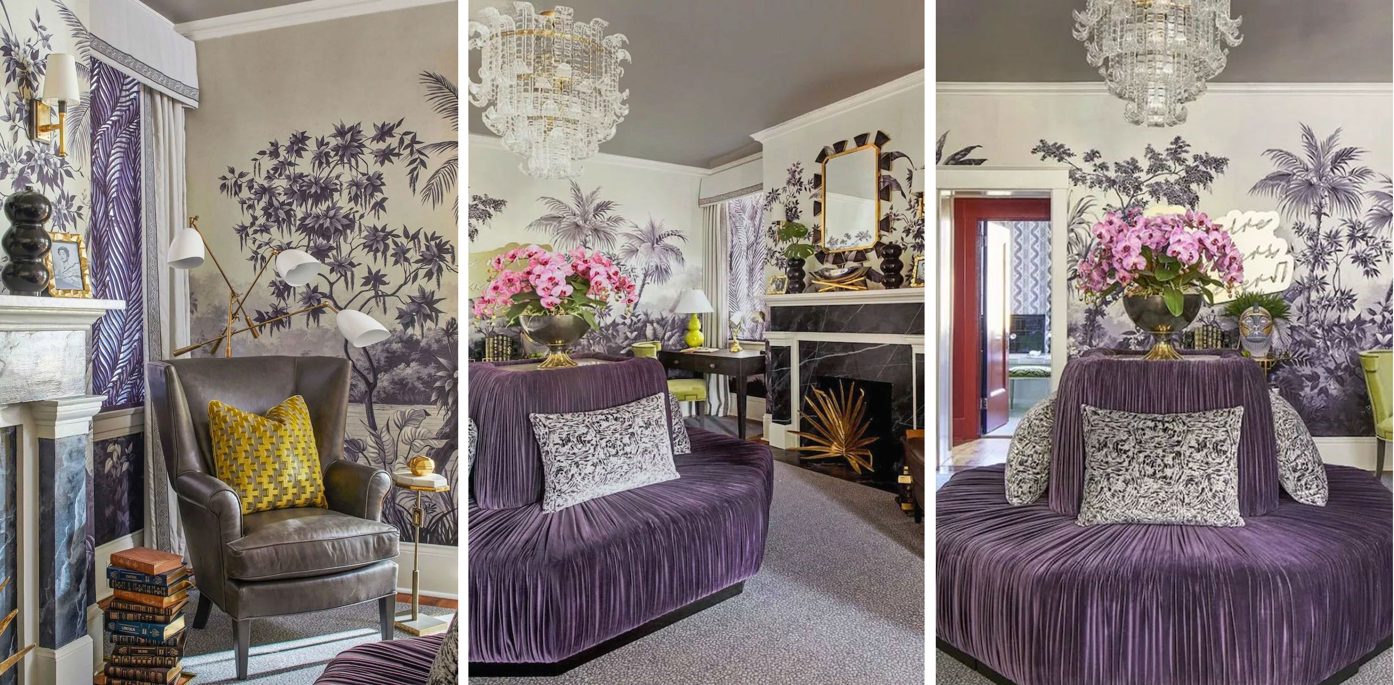 ——明暗交替、黑白剪影構建世人對中國古典風格的傳統印象。水墨畫并非流失了色彩,而是融入了其中色調,由內而外的散發出來。灰紫色給人敦厚端正,古金色和金峰石色的點綴,與絳紫色形成熱烈的對比。
