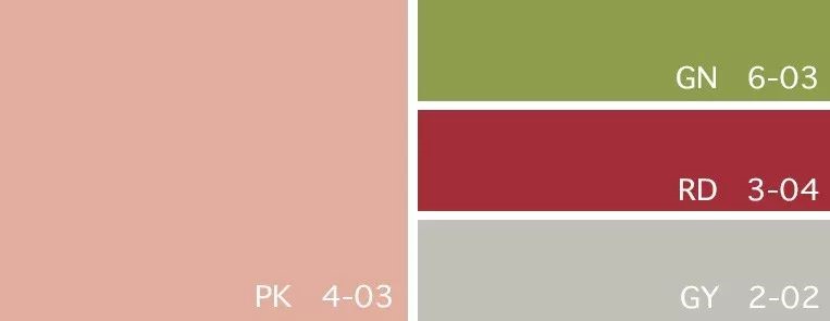 ——暗(an)粉色、菠(bo)菜綠、龐貝紅、銀白色——