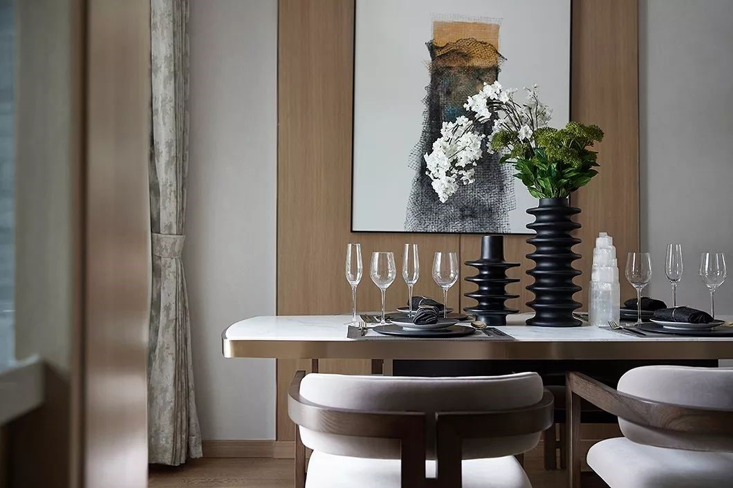 ——采用了現(xian)代(dai)的設計語(yu)言(yan)來表(biao)達東方的意(yi)境,用新中式風格打造出濃(nong)(nong)濃(nong)(nong)禪意(yi)的家居空間,隱(yin)去
