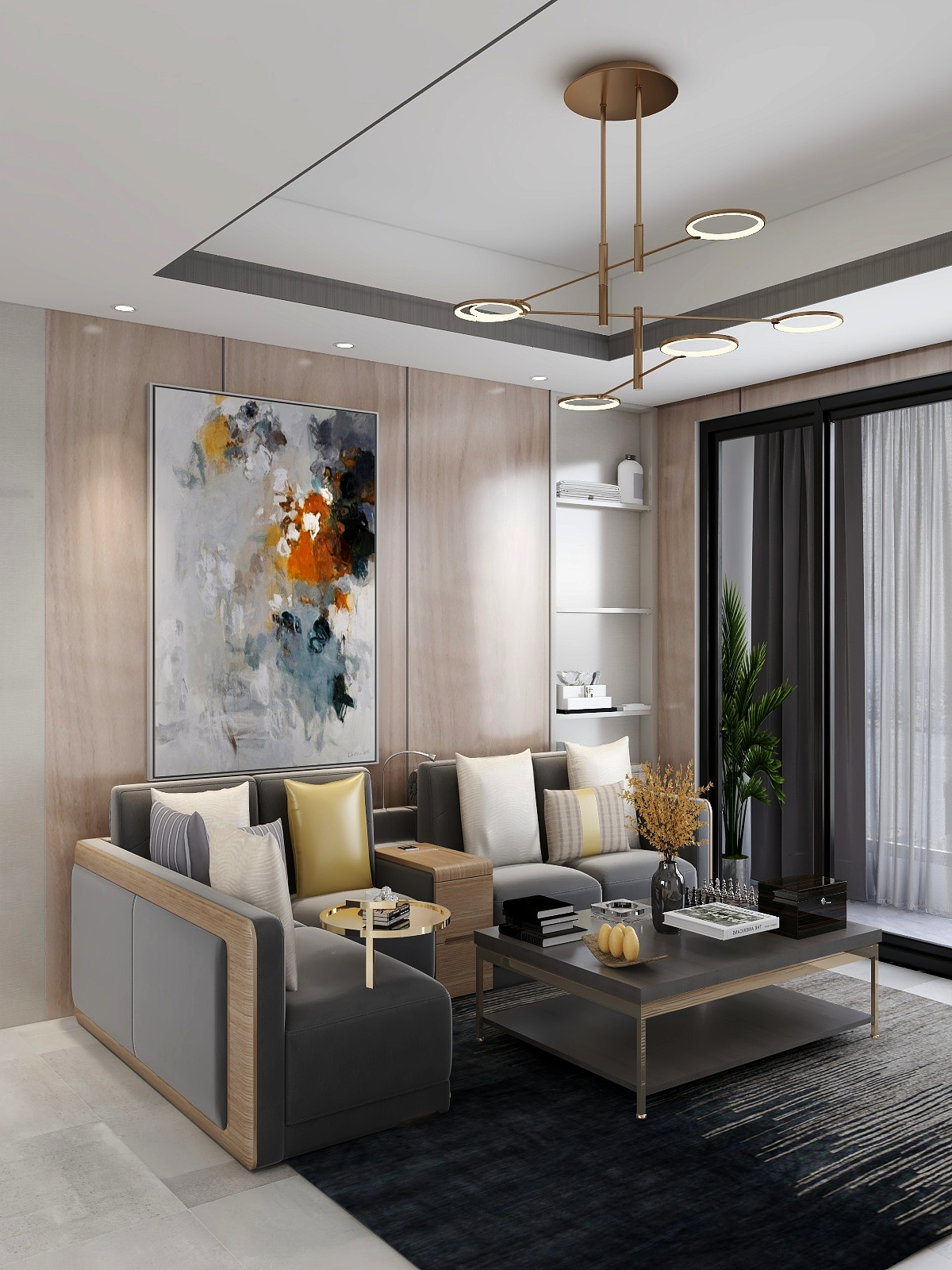 ——何為簡約(yue)?并非(fei)說簡約(yue)等于簡單,而是刪繁就簡,摒棄復雜、多余的(de)裝(zhuang)飾(shi),色彩輕快,明了。一般以清(qing)新(xin)淡雅的(de)色彩為主(zhu),深受現(xian)代年輕人的(de)青睞。客廳,簡潔明快的(de)大線條分(fen)割空間,金屬(shu)圓形吊燈,時尚(shang)又有韻(yun)味。