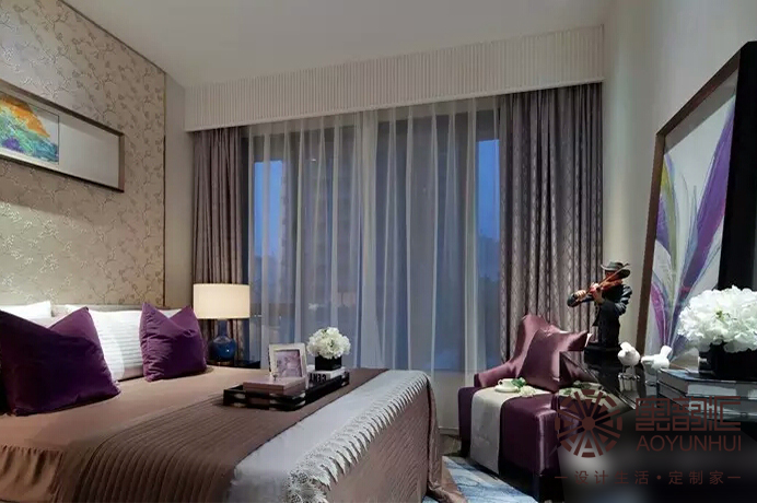 褐色的床單,加上紫色枕頭沙(sha)發,