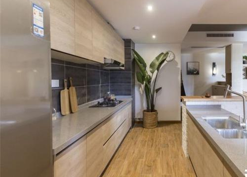 開放式(shi)的廚(chu)房設計了兩排櫥柜,超大收納空(kong)間滿足需求(qiu)。