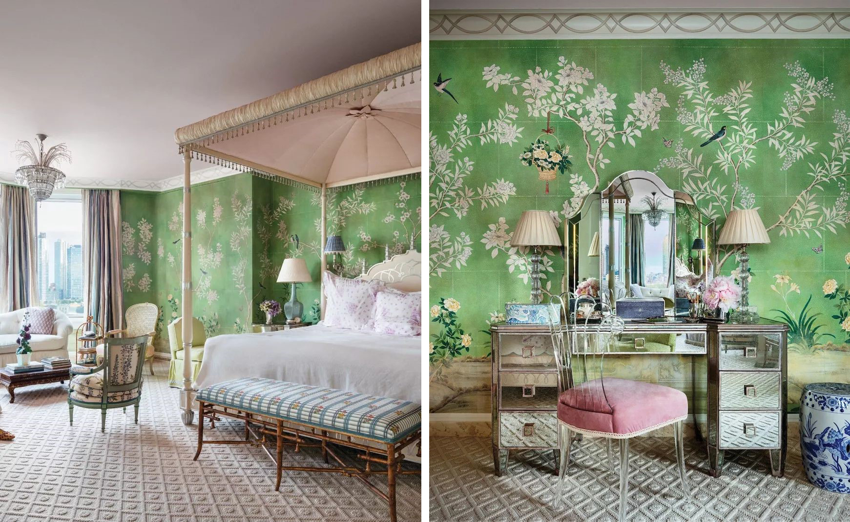 ——以(yi)綠襯粉的嬌媚,以(yi)花鳥鐫刻情調之人,陳設(she)與壁(bi)紙相映,像(xiang)是(shi)古琴與竹笛和吟,清幽(you)悅(yue)耳,山水(shui)共情。
