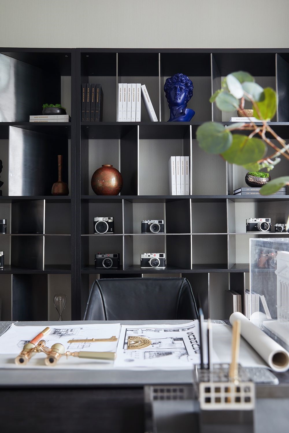 書(shu)房則(ze)(ze)以沉穩為(wei)主基調,不規則(ze)(ze)書(shu)架設(she)立(li)多樣陳列方(fang)式,格架大小不一,擋板傾斜角度各異,兼具(ju)功能(neng)、特色與(yu)美(mei)觀,同時便于(yu)物件(jian)和藏品的展示(shi)和存儲。