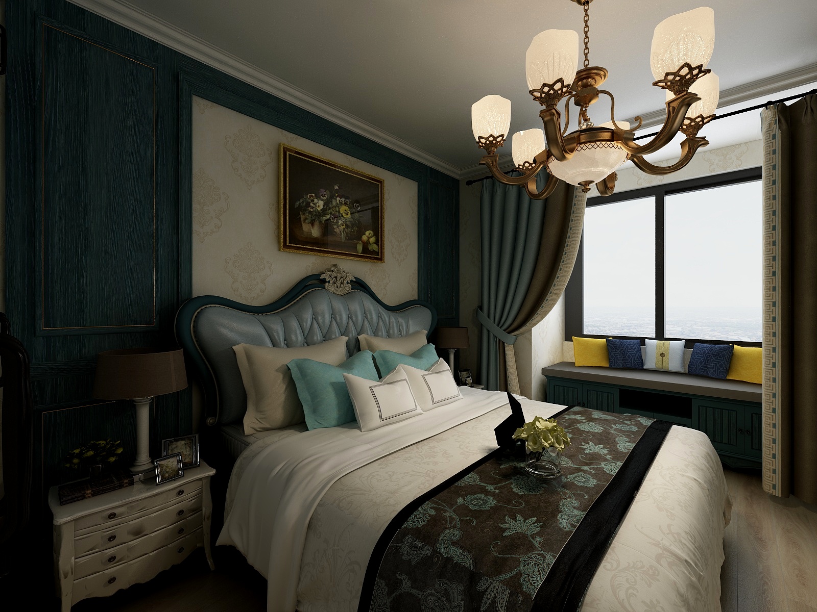 臥室沿用了整體的設計風格加以白色的協調搭配,提亮空間。