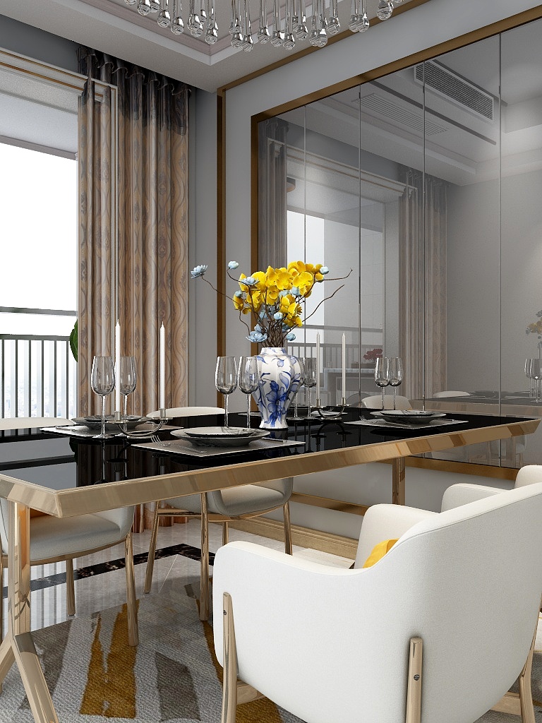 以金屬線條勾(gou)勒,軟裝飾品搭配,