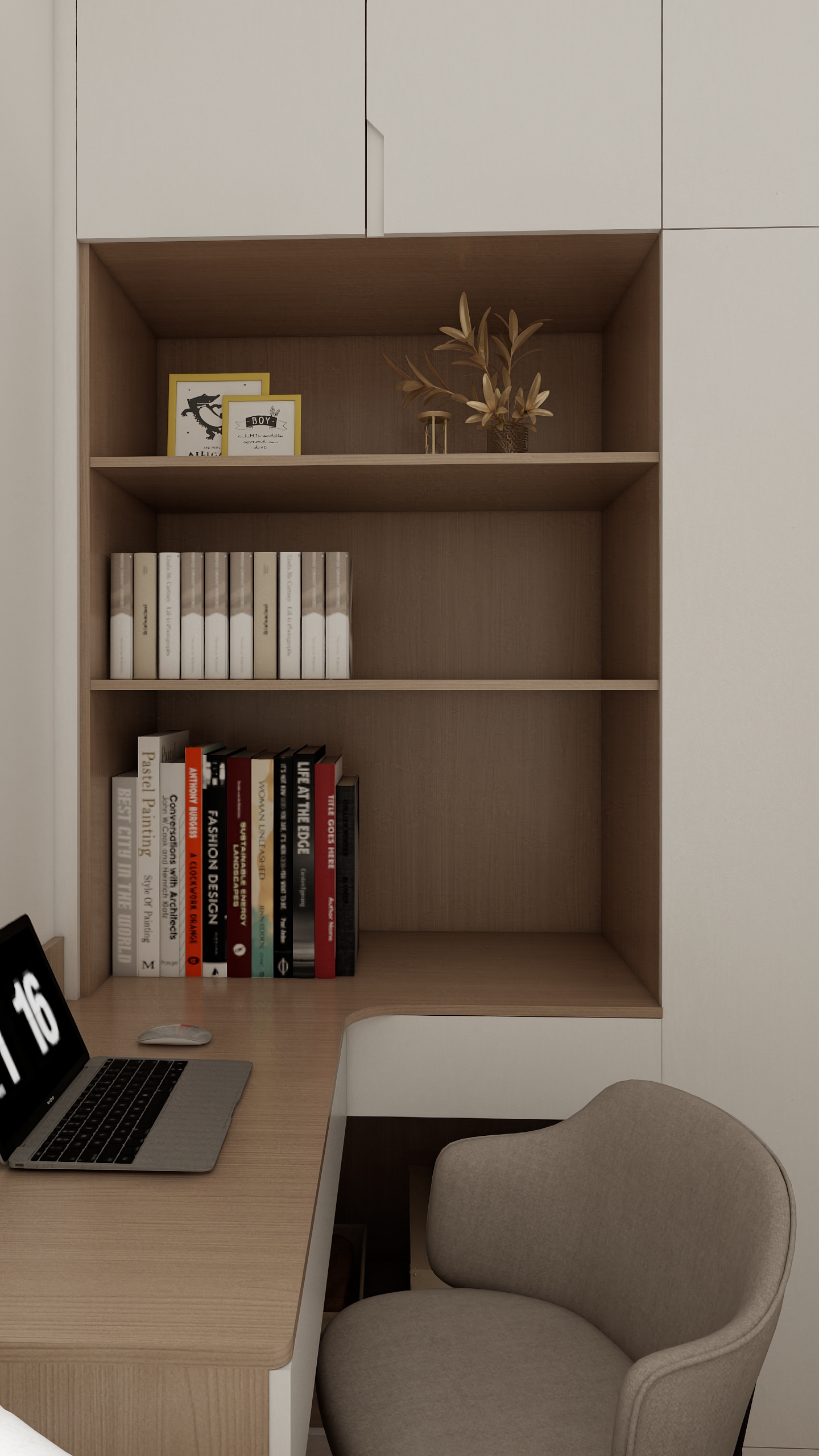 臥室以奶油(you)色為(wei)基調,搭配簡約的家具和(he)柔(rou)和(he)的燈光,營造(zao)出寧靜的氛圍。