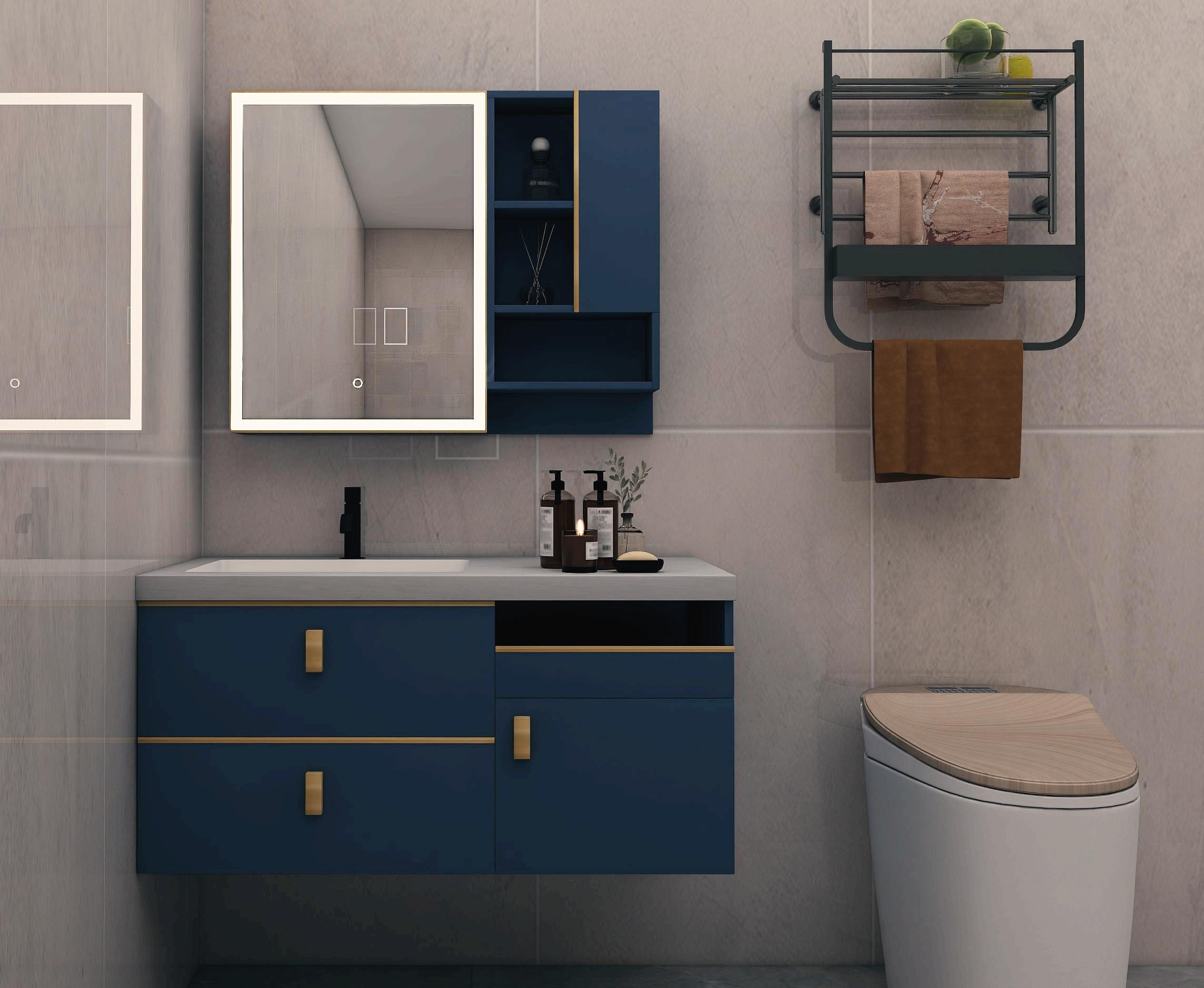 傍晚時分,丈夫去準備美味的佳肴,妻子洗去一身的塵埃后,坐在智能馬桶上看書,享受著深藍色帶給這片空間的寧靜~